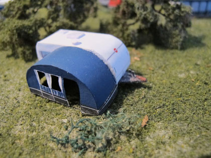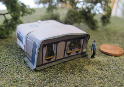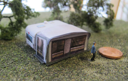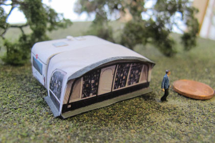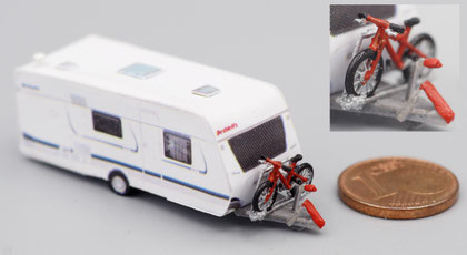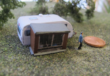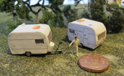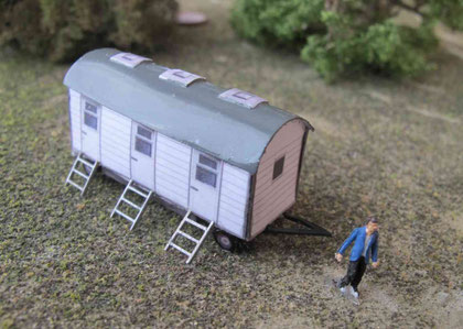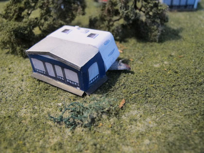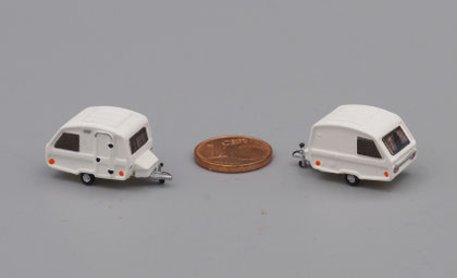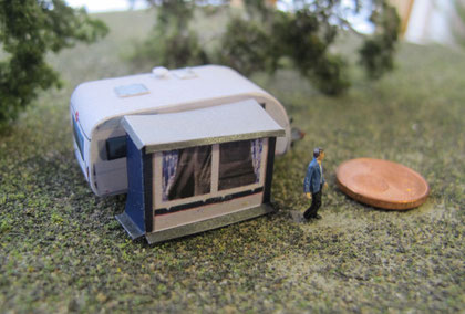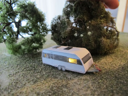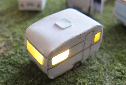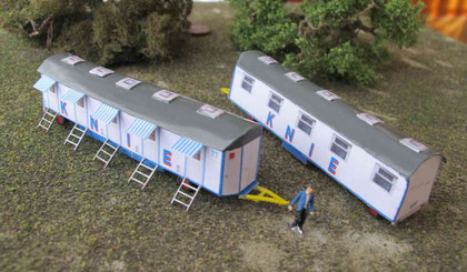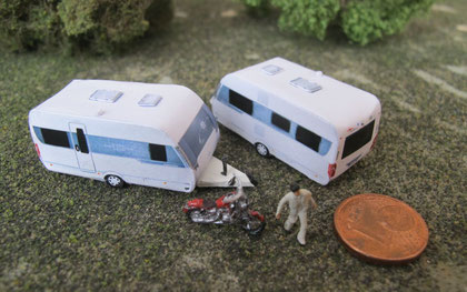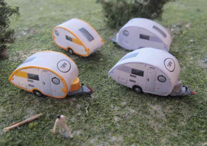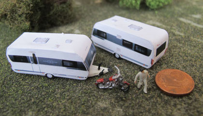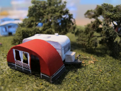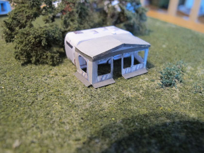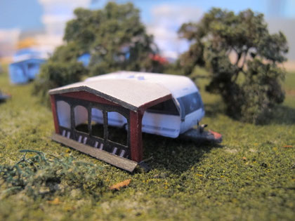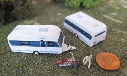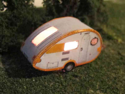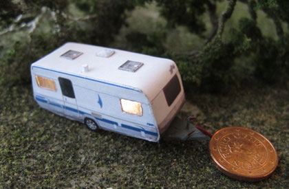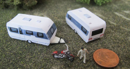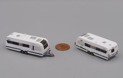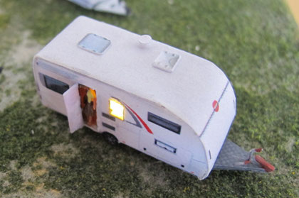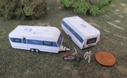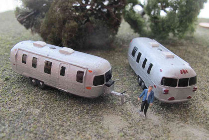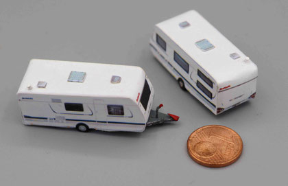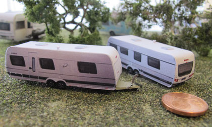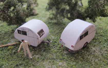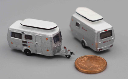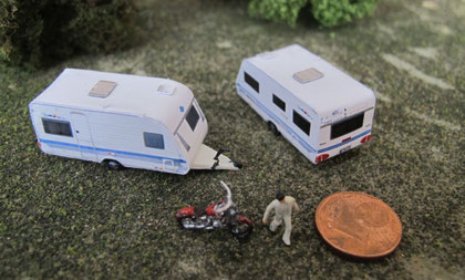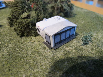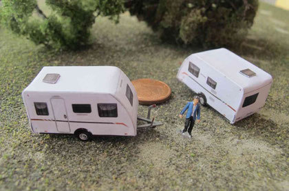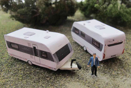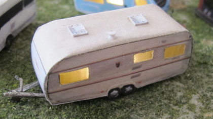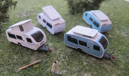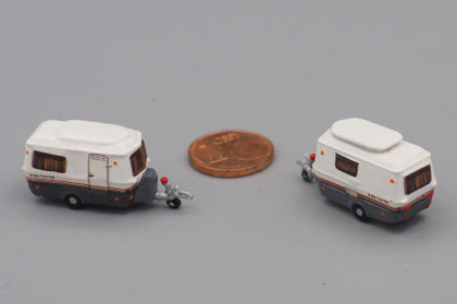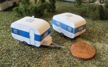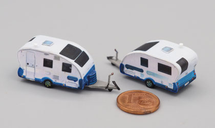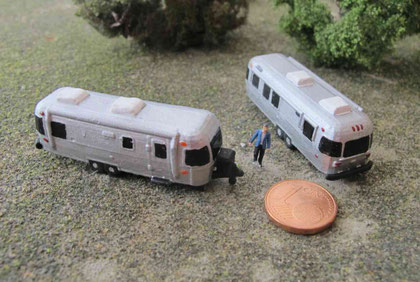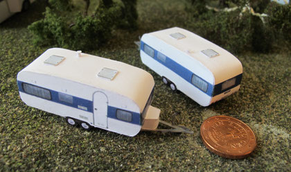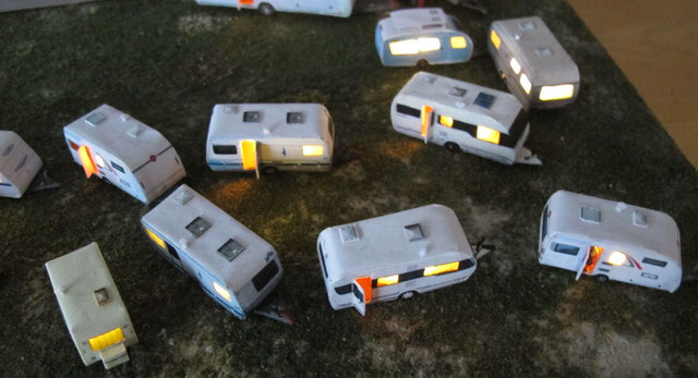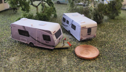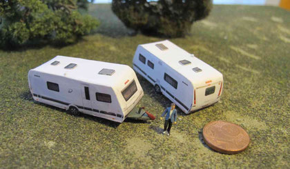 Einige Wohnwagen sind 3D gedruckte Resinmodelle, handlackiert und mit Decals versehen.