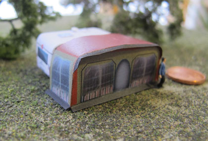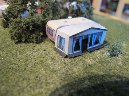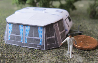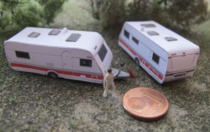 Die Wohnwagen entstehen in Kartonbauweise (120 g Papier, Laserdruck; 160 g Papier für Spur H0) und sind durch eine schichtweise innere